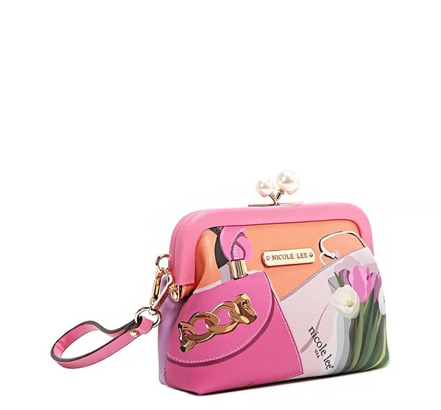 大きく美しいパールがほどこされたキス ロック留めが特徴のエレガントでシックなチェルシー パールコインケース。