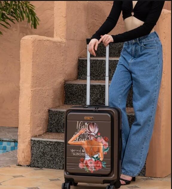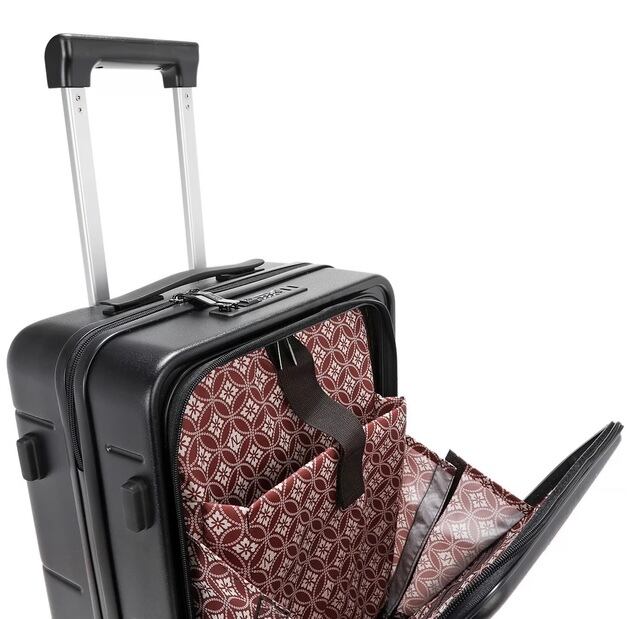 Your packing game just got a major upgrade with our 20" carry-on suitcase. Featuring a resilient, stripe-textured exterior and a convenient front laptop compartment with a secure TSA-lock closure, it's designed for breezy TSA checks and seamless business trips.