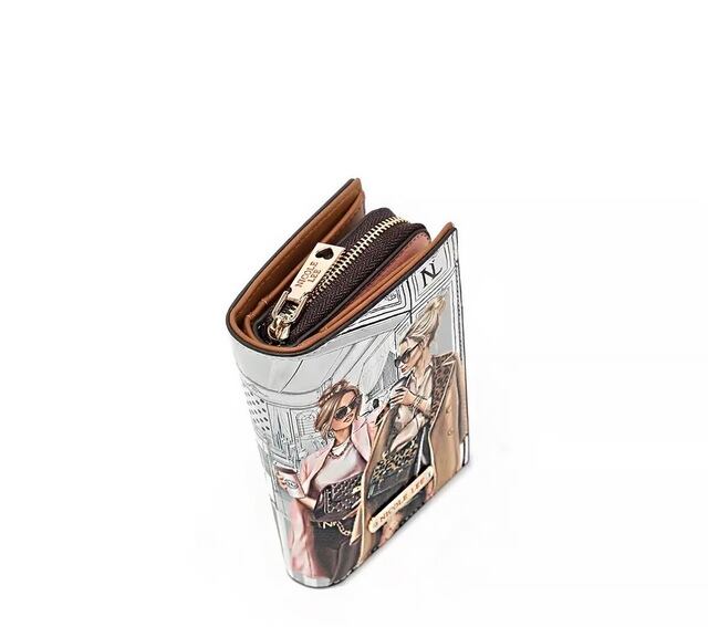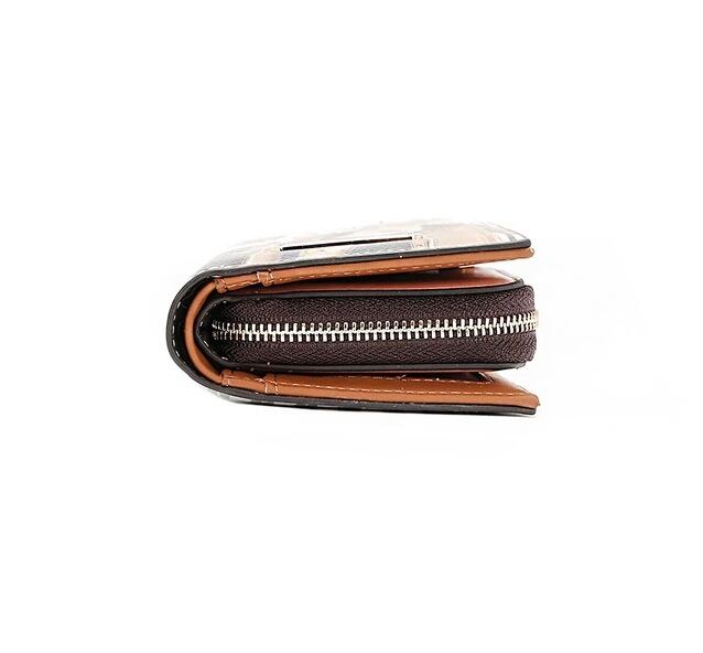 Stay organized and stylish with our sleek bifold wallet, featuring a center zip compartment, multiple card holders, and cash pockets in a structured silhouette.