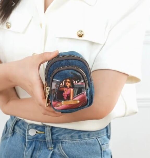 Can't get enough of our adorable mini keychains that double as a coin purse? Meet our new backpack keychain in timeless, cotton blue with 2 zip compartments for small beauty essentials, cards, money, and more!