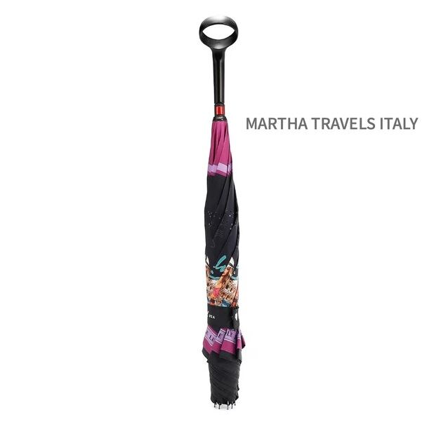 Don't let those rainy days ruin your outfit or floors with our Blakely umbrella. The inverted design closes from the inside-out so you can carry it around without dripping. You can also take your coffee with you thanks to the built-in cup holder handle. (Does not fit tumblers)