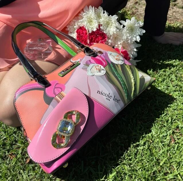 ・ゆったりとしたデュアルトップショルダーストラップ(ドロップ22.8㎝)とニコール・リーの本物のサークルチャーム付き