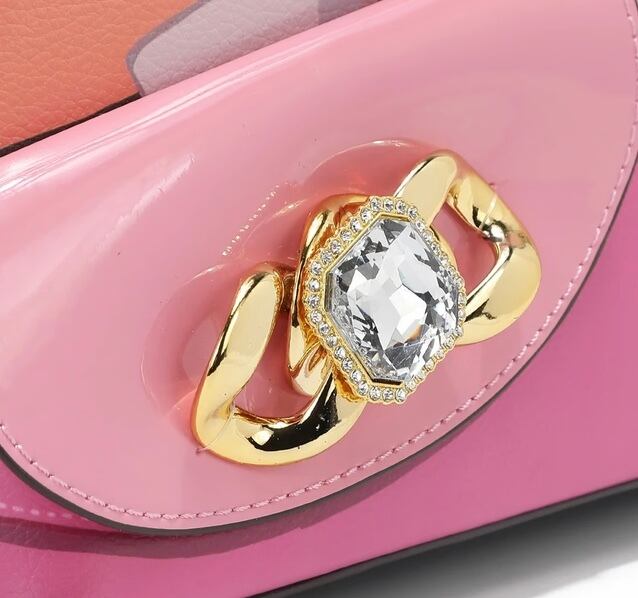 ダイヤモンドストーンをあしらい、輝きのあるゴールドトーンのチェーンリンクがラグジュアリーな雰囲気を添えています。