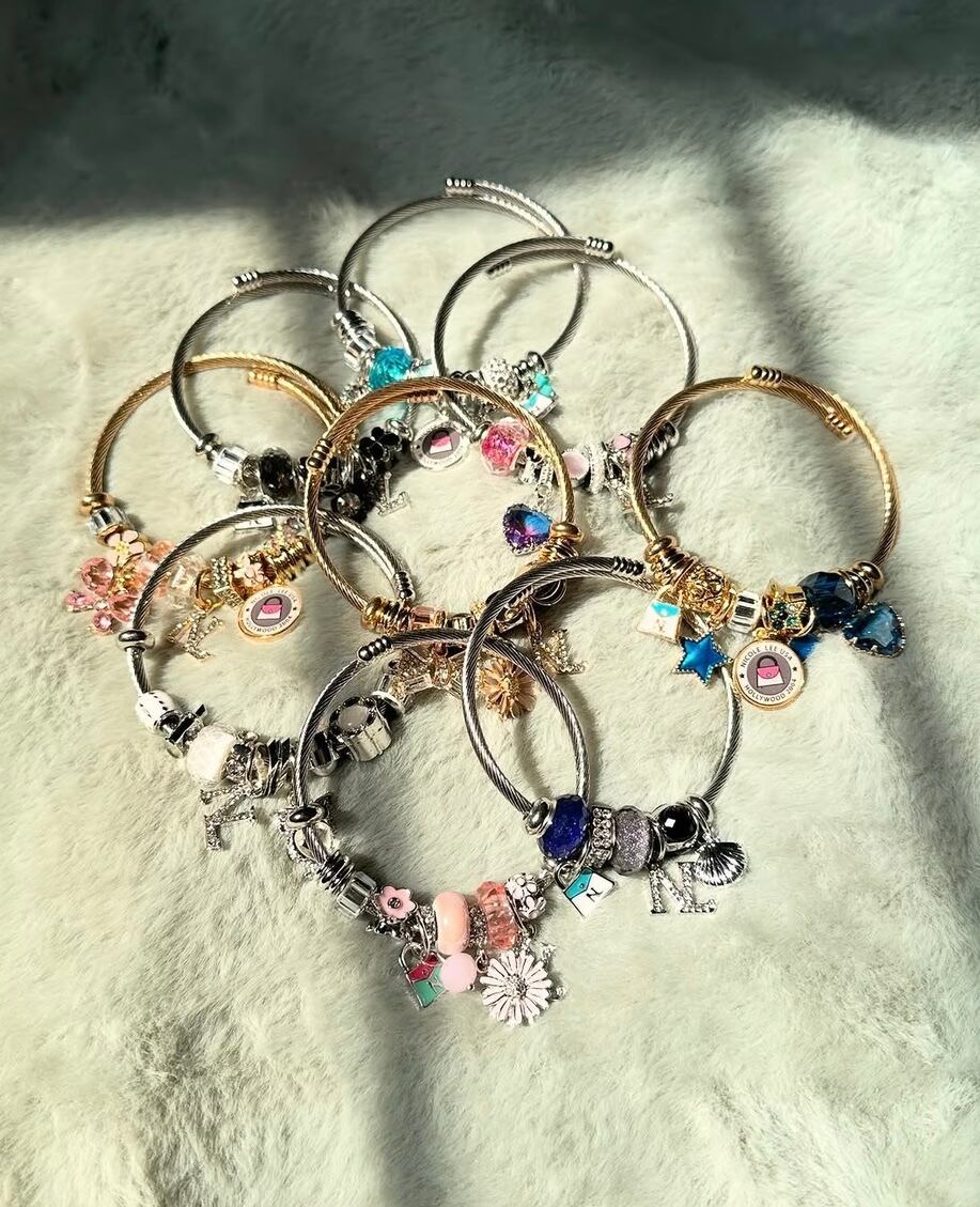 ・様々な合金チャームが付いた拡張可能なステンレスバングル