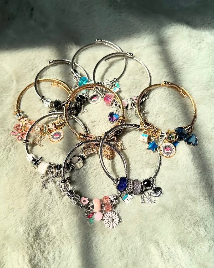 ・様々な合金チャームが付いた拡張可能なステンレスバングル