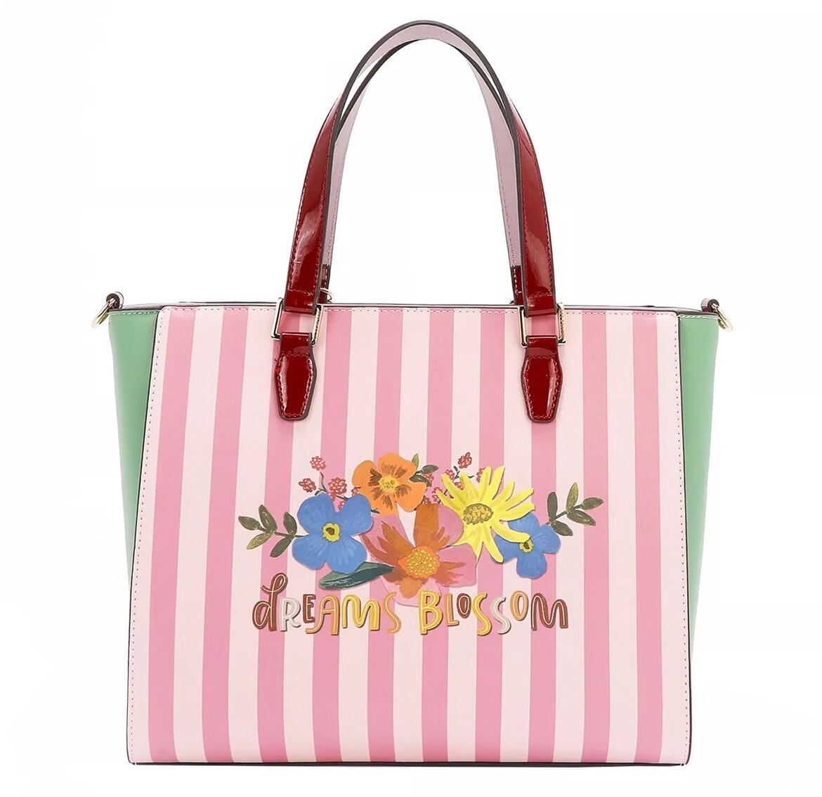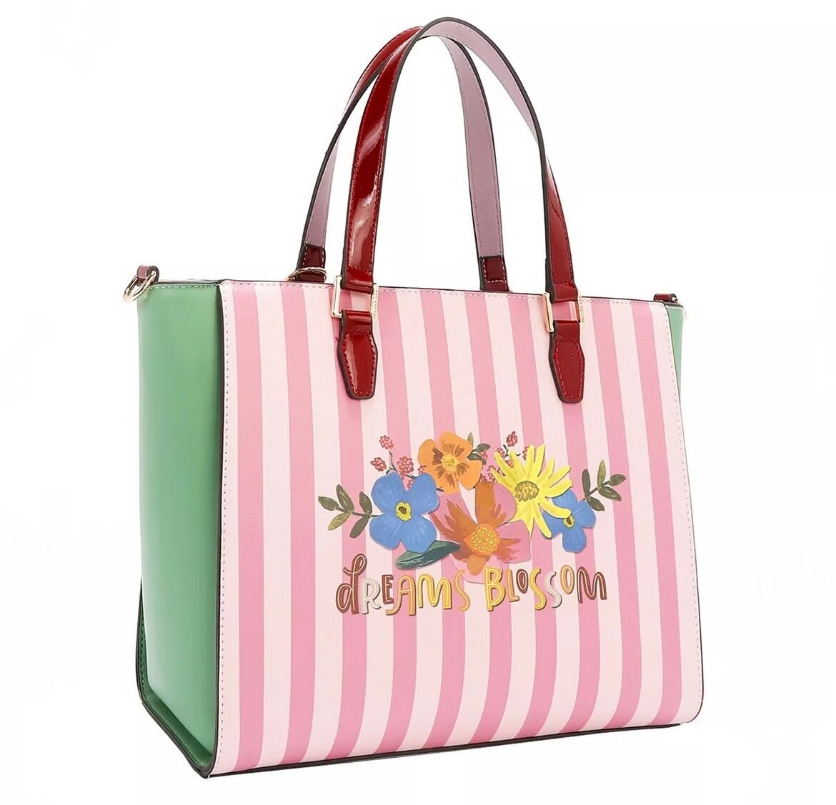 Step into your day with the Dreams Blossom tote — a perfect blend of beauty and purpose. Adorned with artful floral motifs and shimmering details, this roomy companion carries your essentials and your ambitions. Whether you’re heading to work or wandering through weekend markets, this tote is a blooming reminder to embrace every opportunity with style.