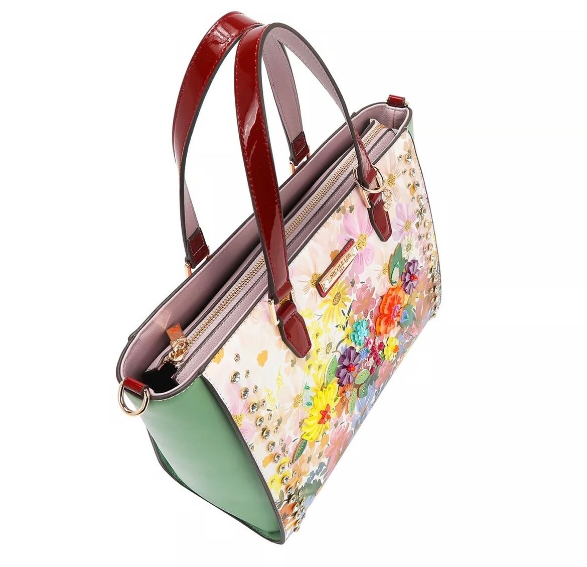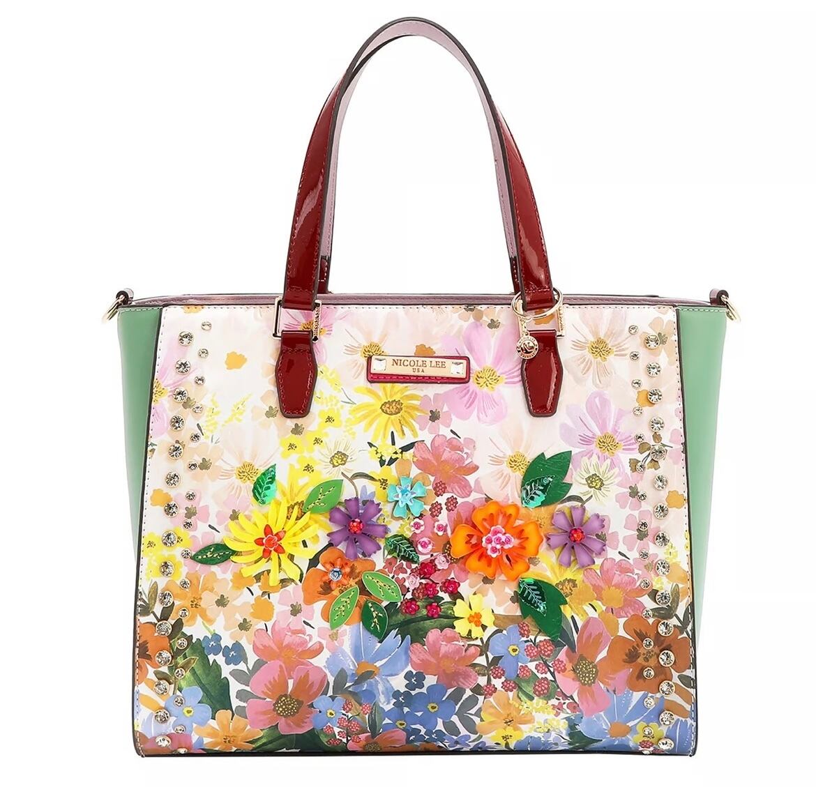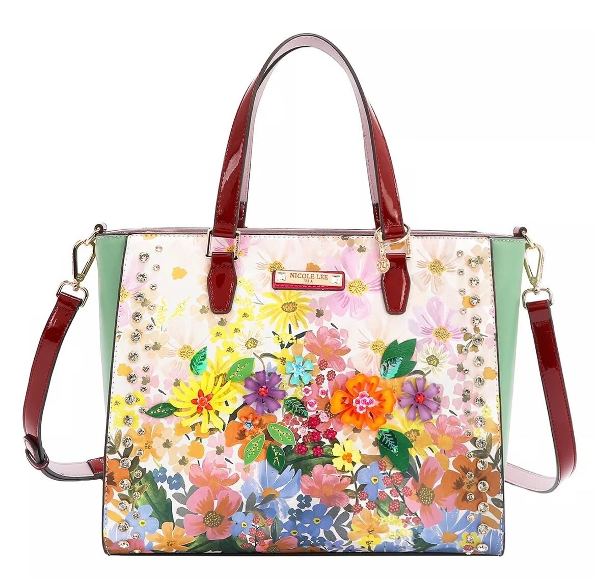 芸術的な花のモチーフときらめくディテールがあしらわれ、美しさと機能性を備えたトートバッグ。日常やリラックスした週末のお出掛けなど、あらゆる機会に選びたくなる華やかなトートバッグは、コーディネートをスタイリッシュに仕上げます。