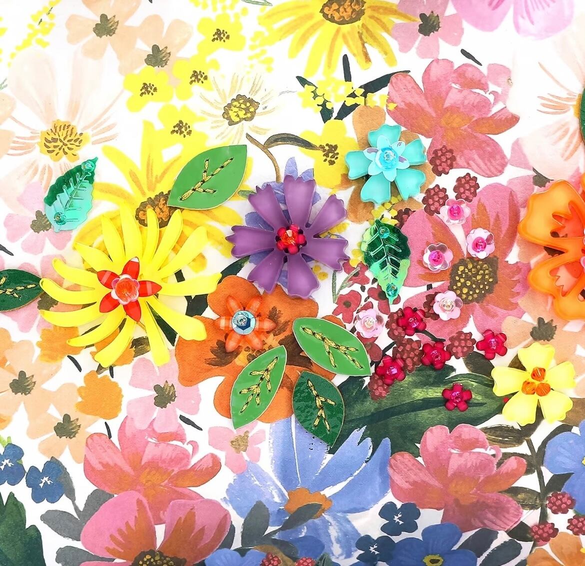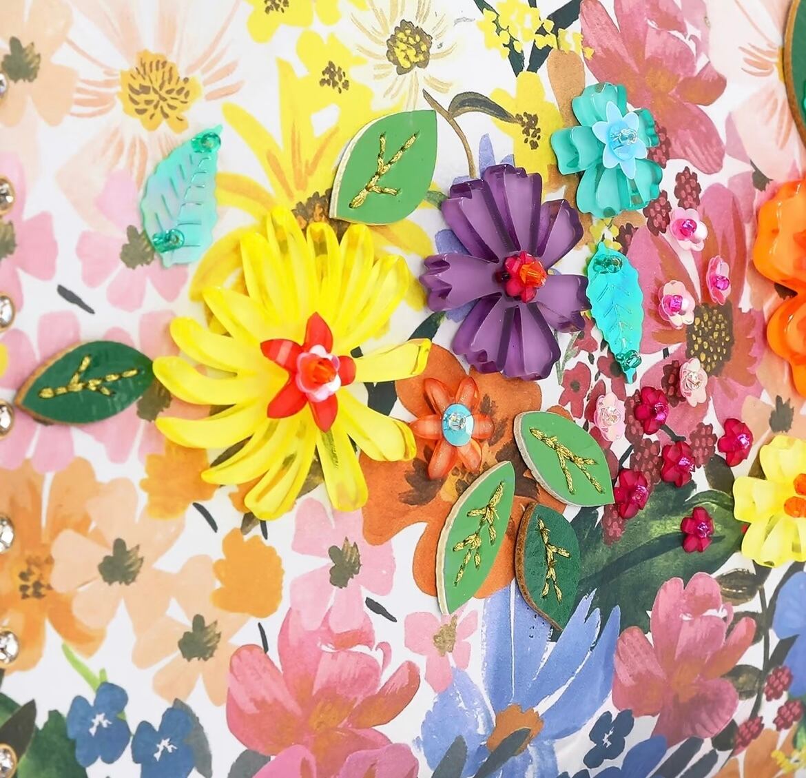 ・前面は樹脂の花、スパンコール、ビーズ、アップリケで装飾されています