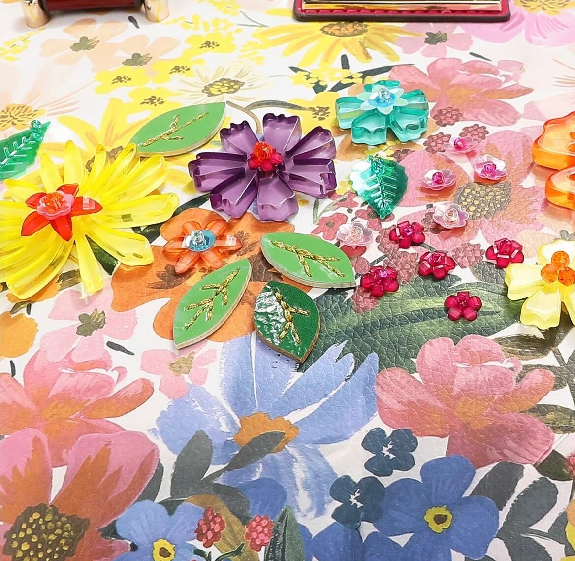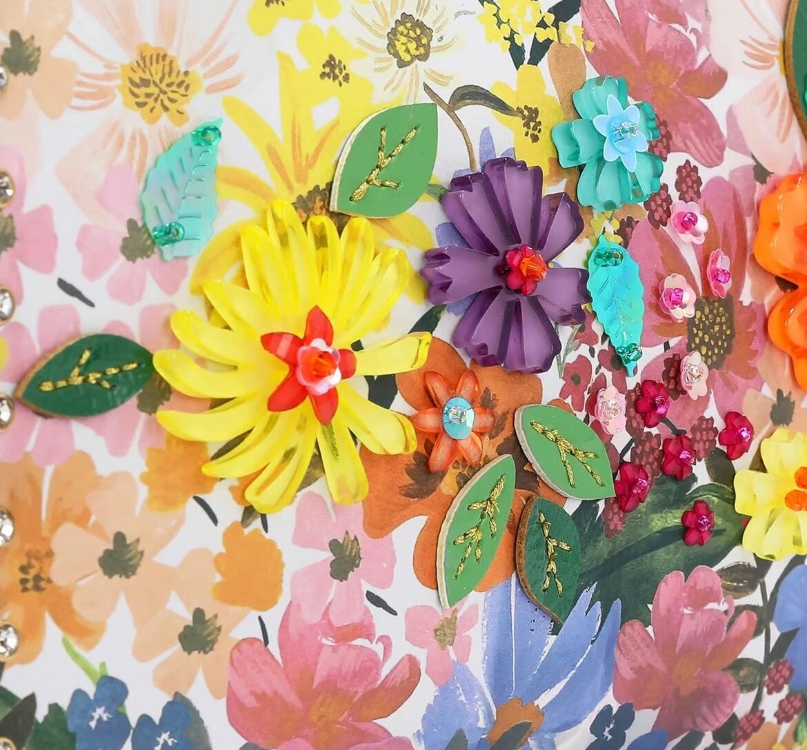 ・前面は樹脂の花、スパンコール、ビーズ、アップリケで装飾されています