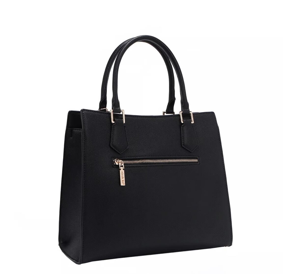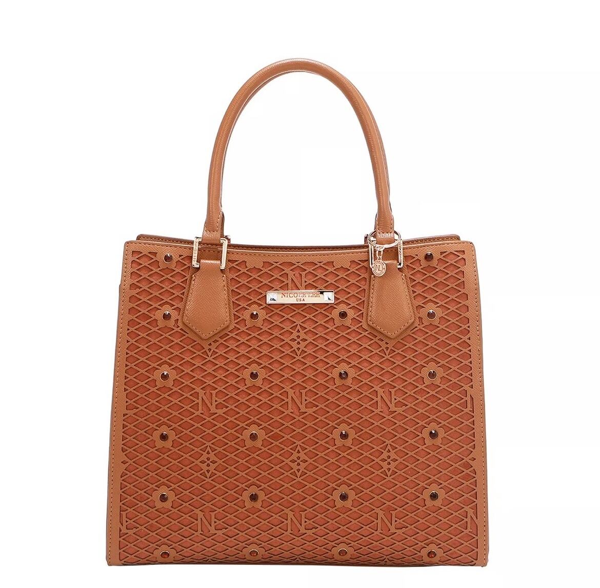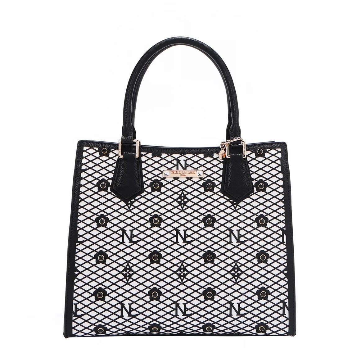 Make an impression with the Gracie structured tote — a refined design that commands attention. The architectural silhouette is elevated by meticulous laser-cut motifs and tonal rhinestones, making it a statement piece that transitions from desk to dinner with grace. Spacious enough for your daily essentials, this tote proves that beauty and practicality can go hand in hand.