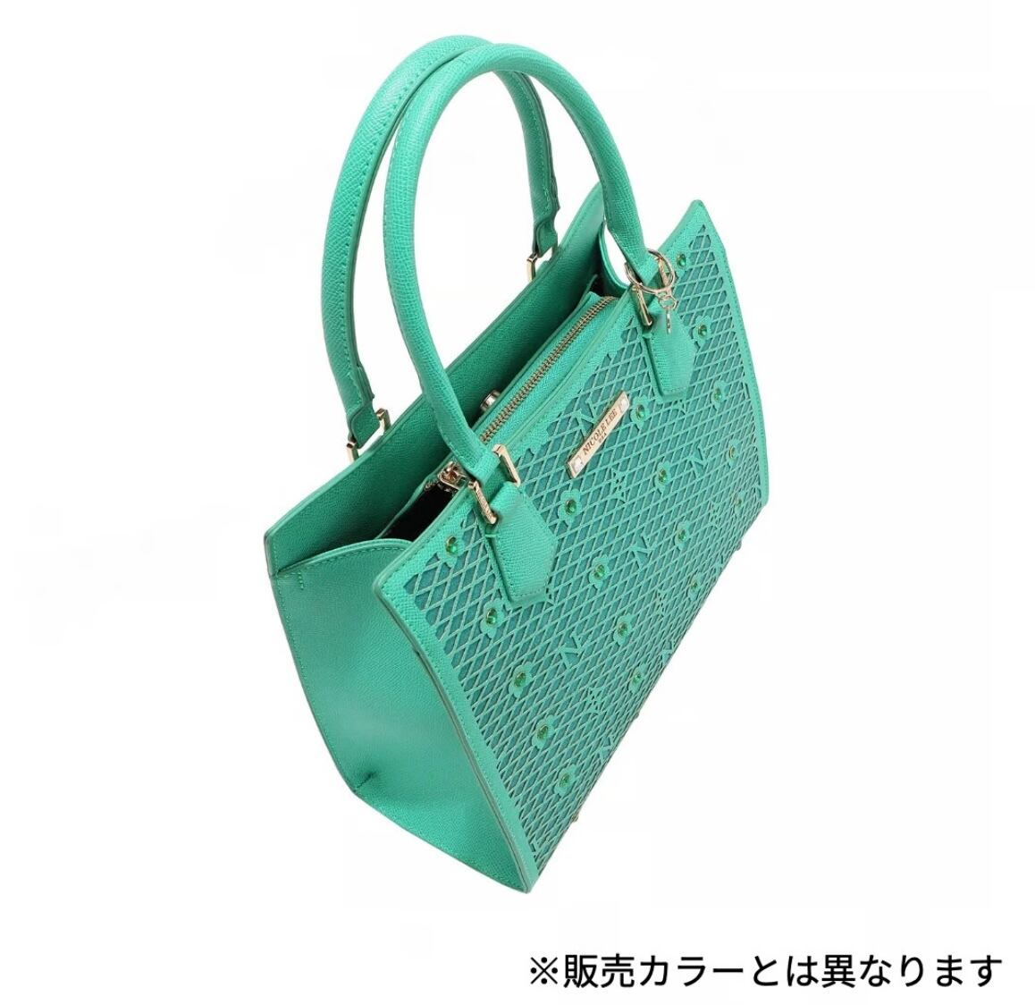 建築的なシルエットは、精巧なレーザーカットモチーフと同系色のラインストーンによってさらに引き立てられ、オフィススタイルからディナーまで、優雅に持ち運べるステートメントピースとなっています。