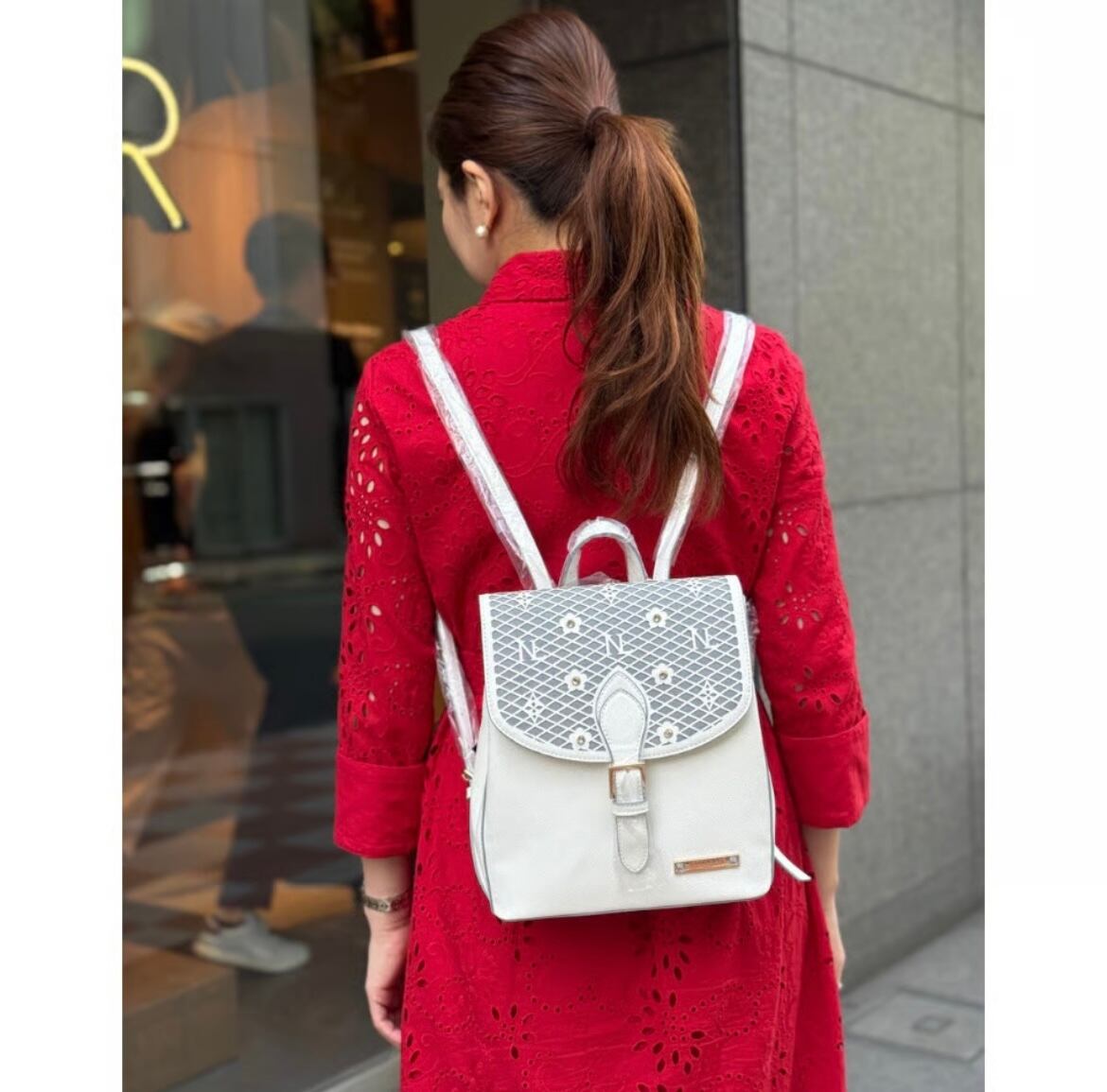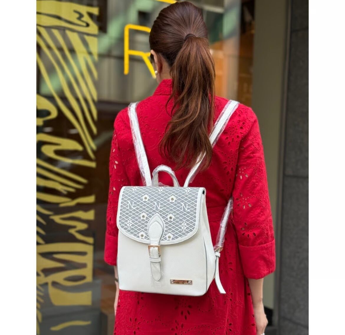 時代を超えたシルエットにモダンなひねりを加えたアクティブなライフスタイルに最適なバックパックは、レーザーカットのディテールと同系色のラインストーンが、ラグジュアリーバッグへと昇華させます。機能性と洗練さを兼ね備え、どんなワードローブにも自然にマッチします。