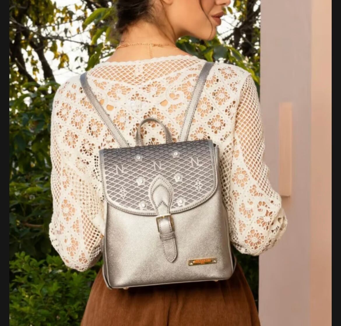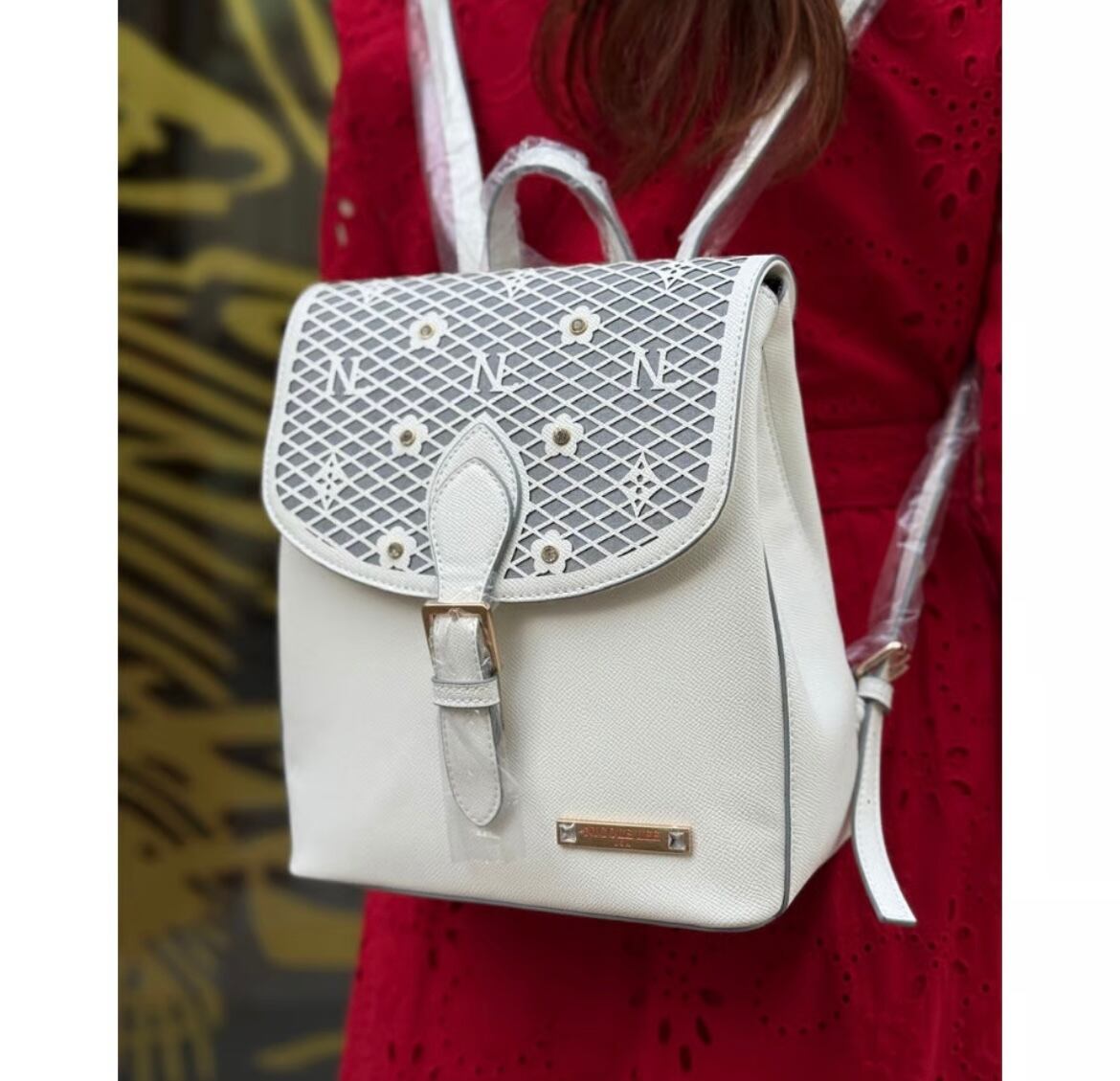 A modern twist on a timeless silhouette, the Gracie backpack blends versatility with elevated design. Crafted with laser-cut detailing and tonal rhinestones, this style transforms everyday utility into a statement of understated luxury. Perfect for life on the go, this backpack offers both function and finesse, seamlessly complementing any wardrobe.