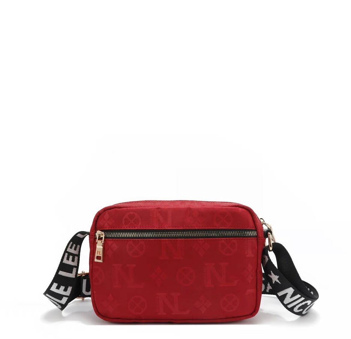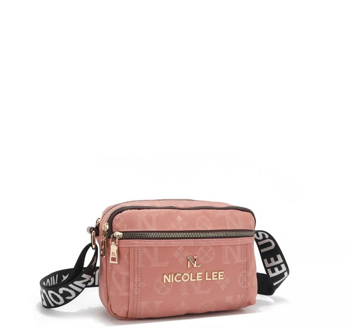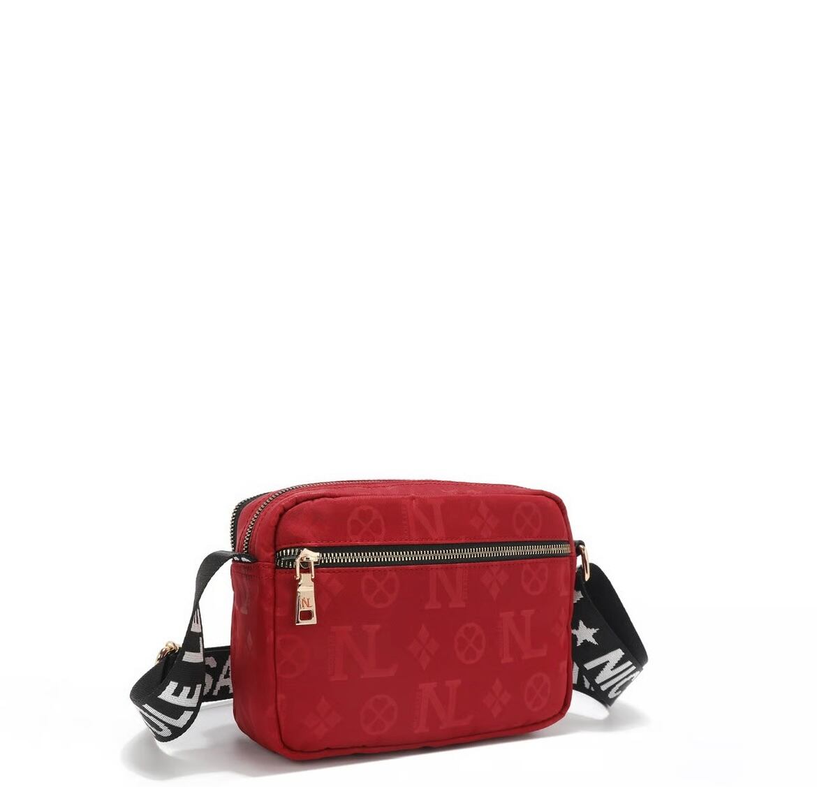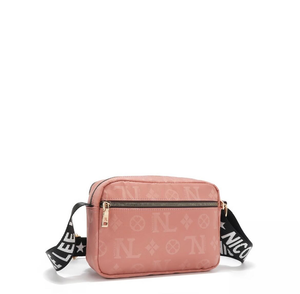 Its sleek rectangular frame, accented with delicate gold-tone hardware and monogram detailing, makes it the ultimate hands-free statement piece.