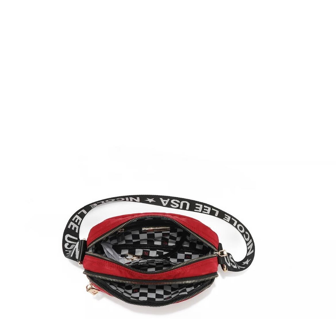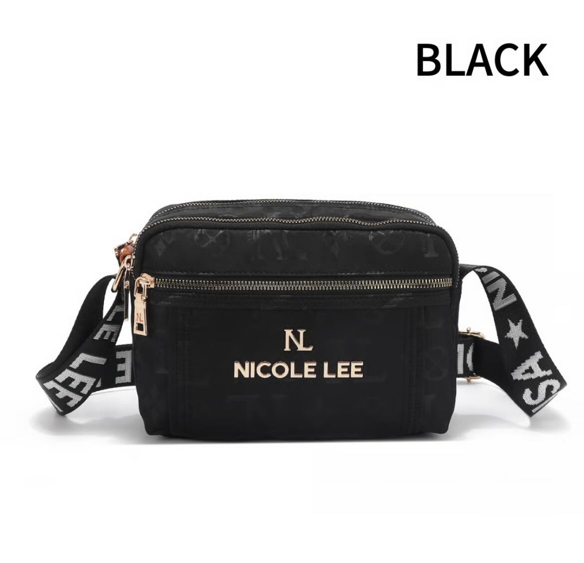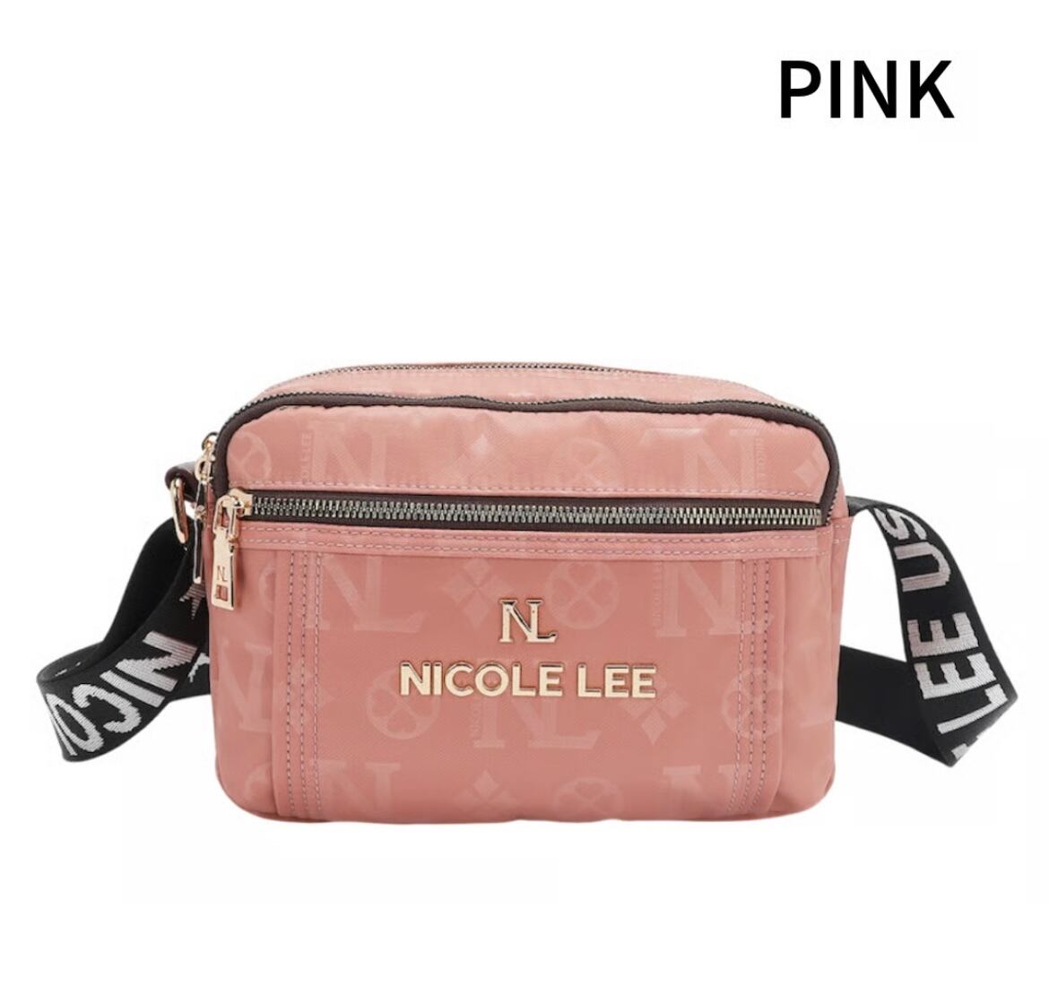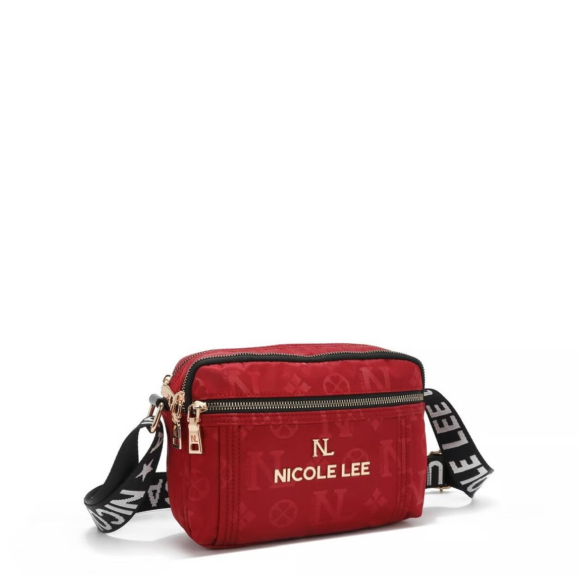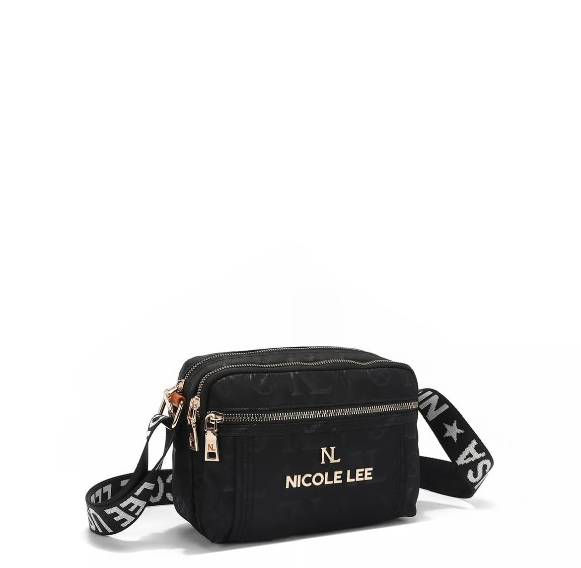 Its sleek rectangular frame, accented with delicate gold-tone hardware and monogram detailing, makes it the ultimate hands-free statement piece.