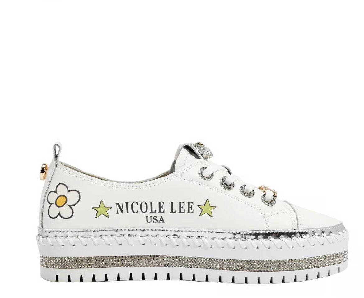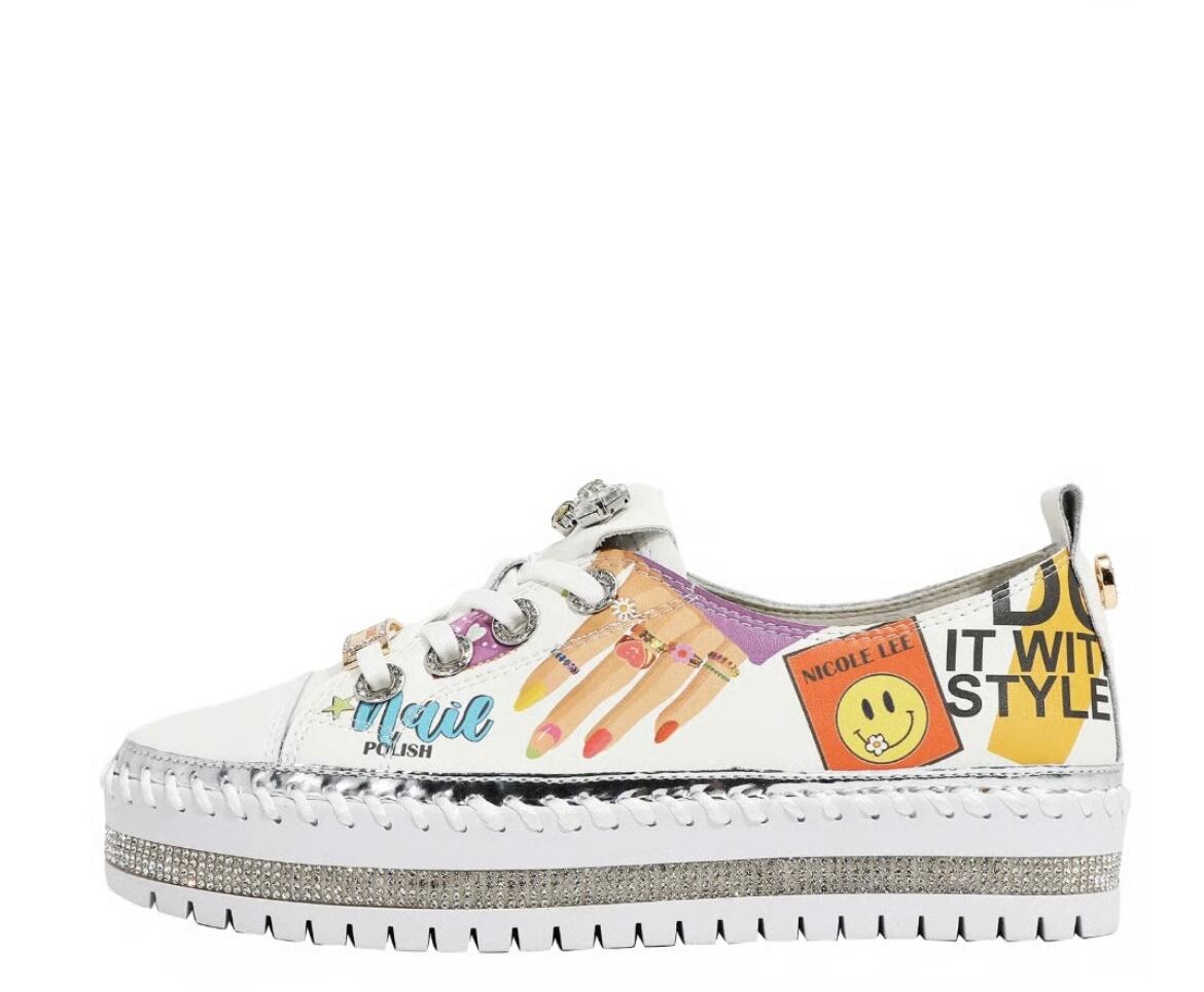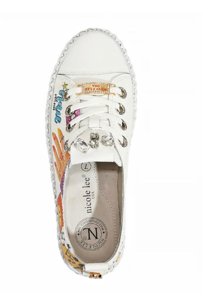 洗練されたこのスニーカーは、ゆったりとしたシルエットにエレガントなラインストーン、そして編み込みのプラットフォームソールが特徴です。