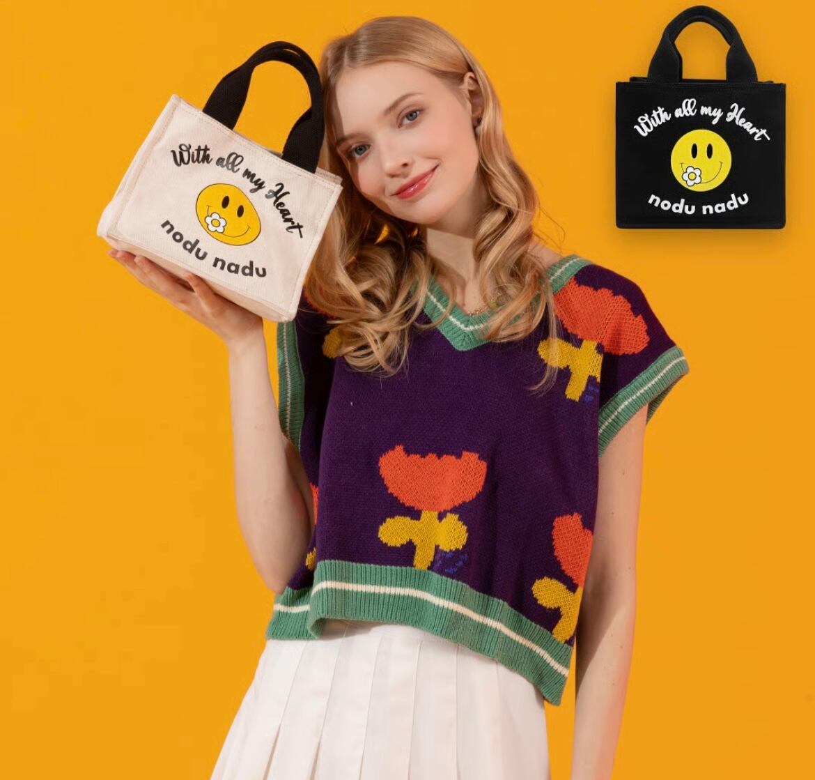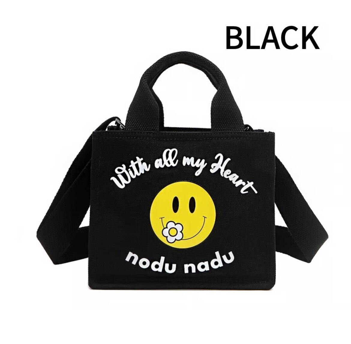 可愛いスクエア型のキャンバスバッグには、心のこもった「With All My Heart(心を込めて)」のメッセージが刻まれています。どこへ行っても愛を広めよう、という素敵なメッセージです!