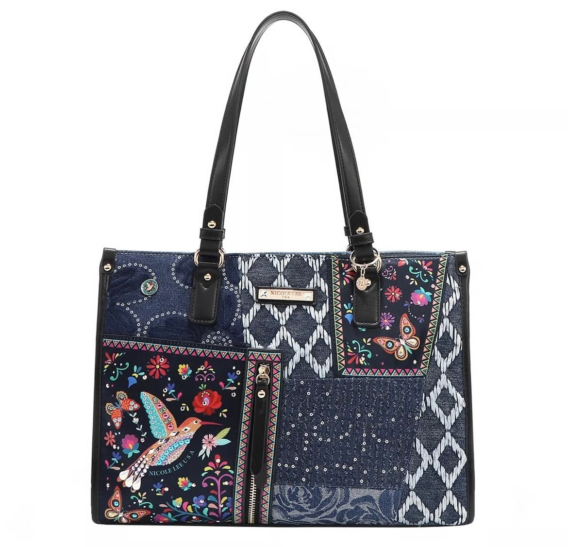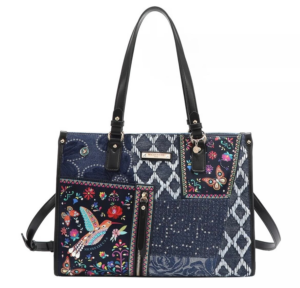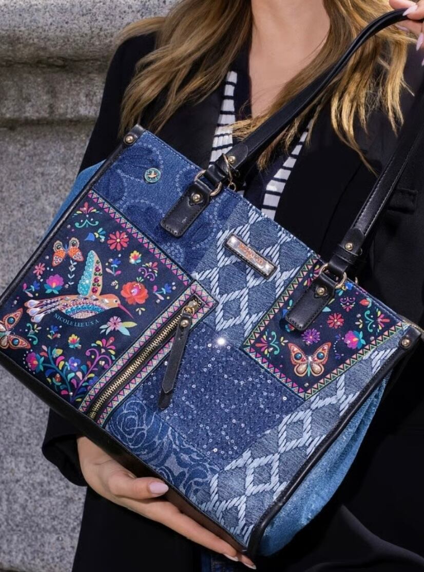 Carry the magic the "Bosque de Amor" Denim Tote holds your essentials in style while echoing the beauty of the hummingbird.