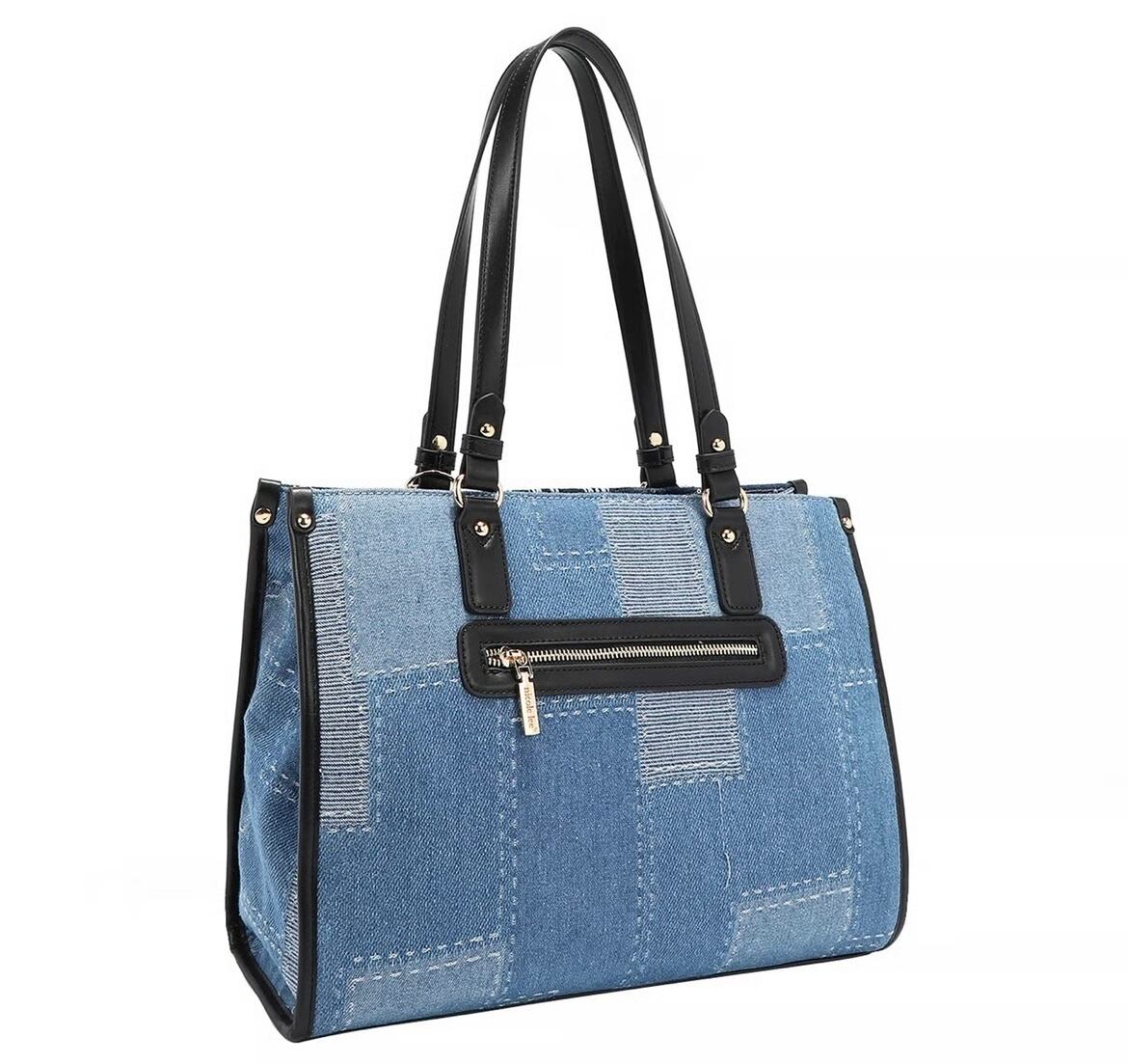 ・コットンデニムの外装にフェイクヴィーガンレザーのアクセント