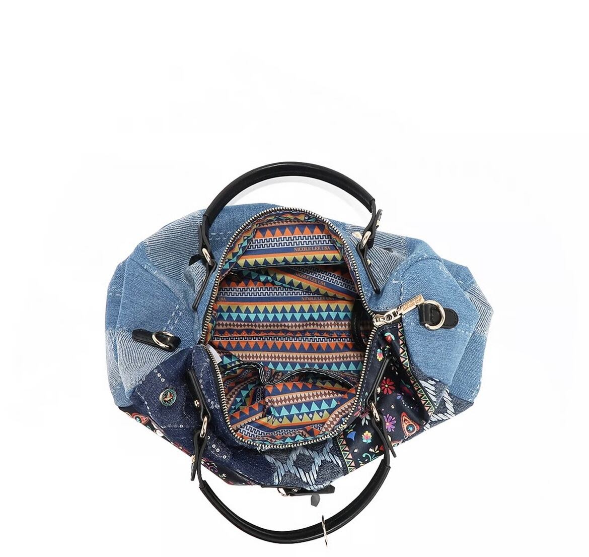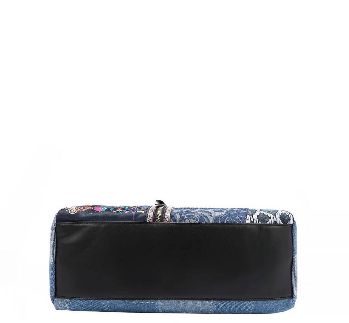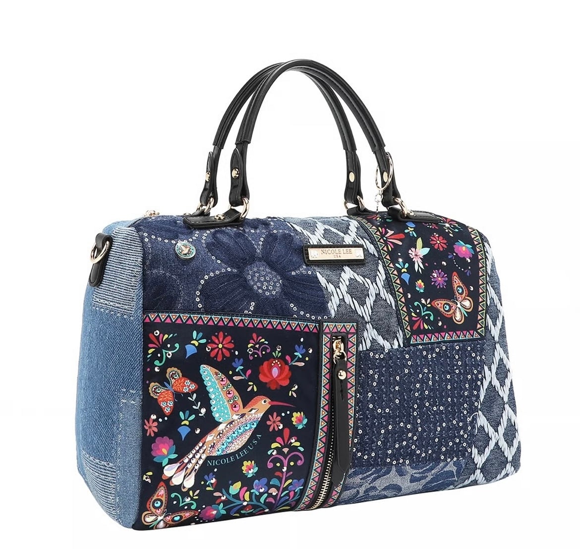 Let your look tell a story with the "Bosque de Amor" Denim Boston Bag a mystical touch for bold, boho-chic souls.