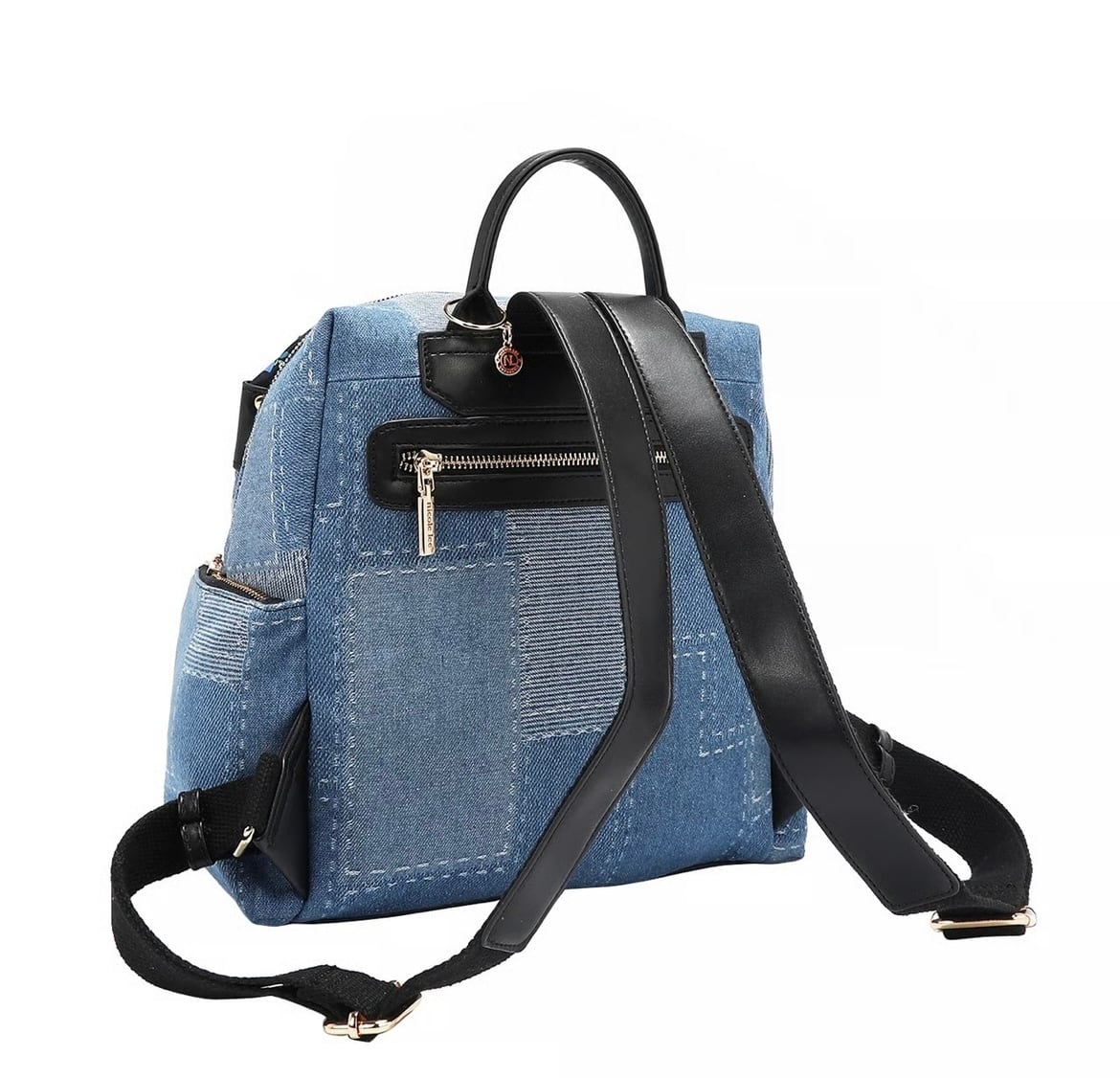 ・コットンデニムの外装にフェイクヴィーガンレザーのアクセント