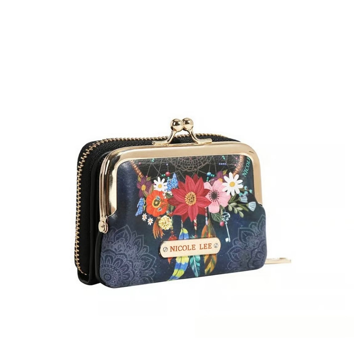がま口ポーチにはコインを、ジッパー開閉のアコーディオンスタイルのカードケースにはお札やクレジットカードなどを収納できます。