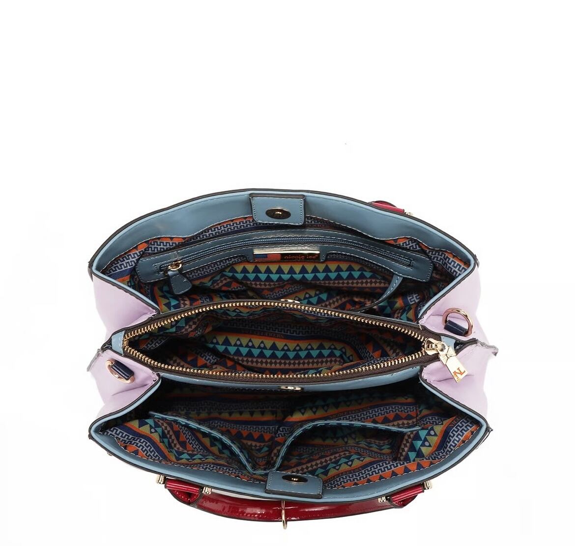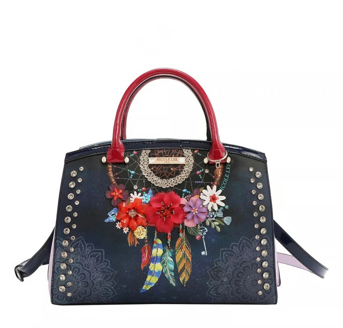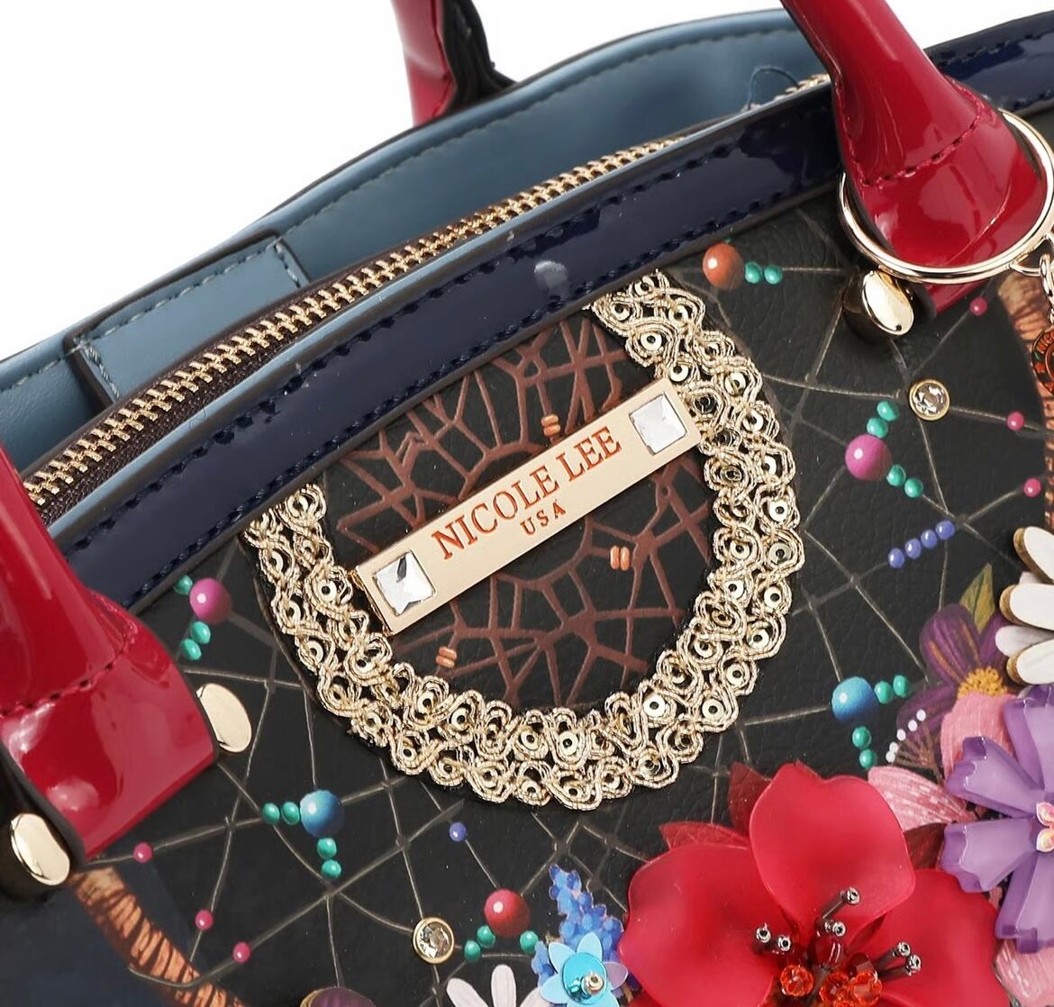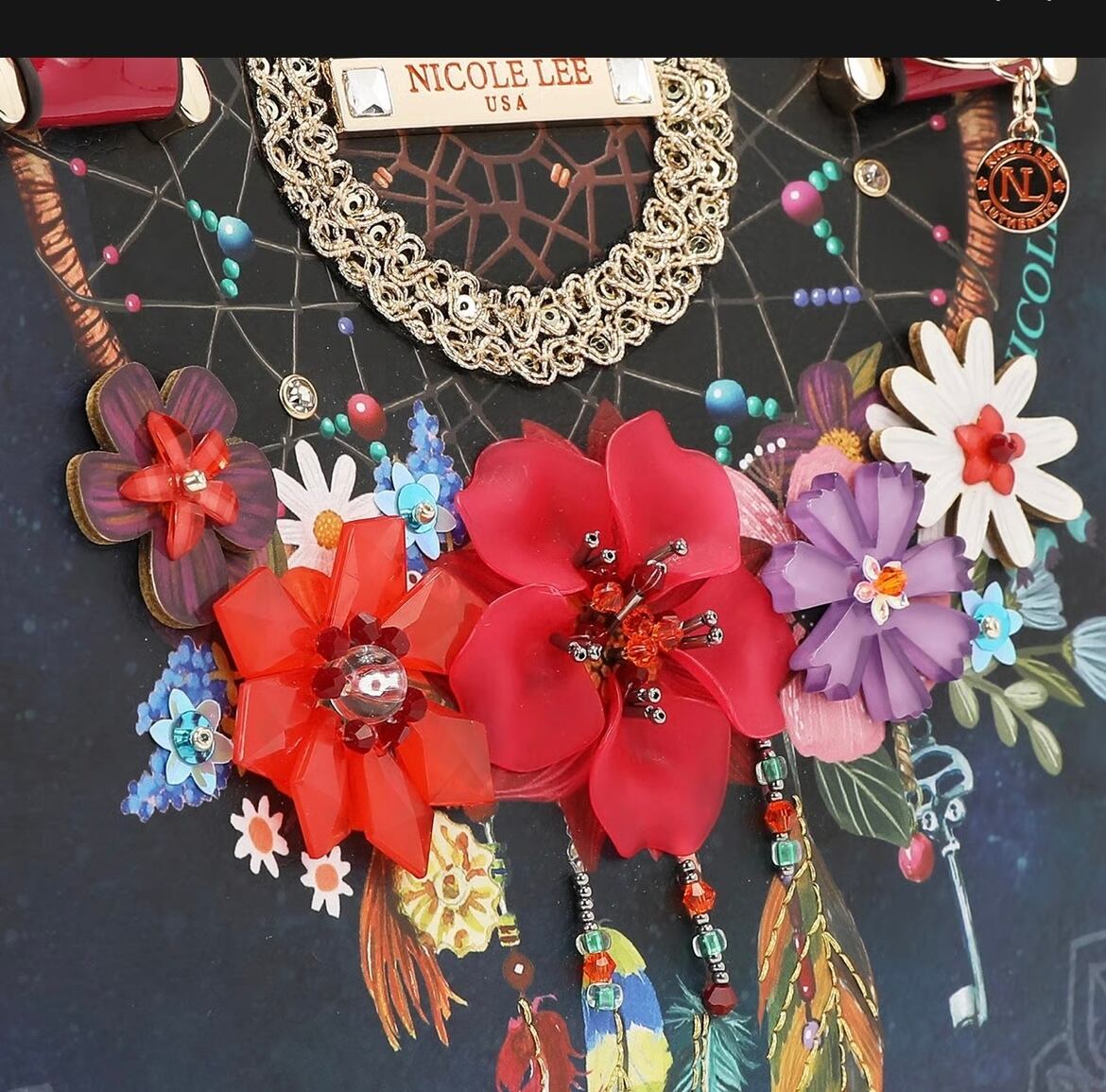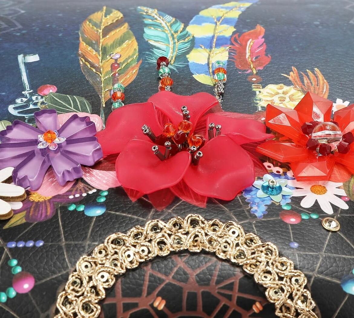 『美しさ』 『自由』 『勇気』 が表現されたこのサッチェルバッグは、高級感を感じさせるゴールドチェーンやビーズ、花の装飾が目を引く人気シリーズです。