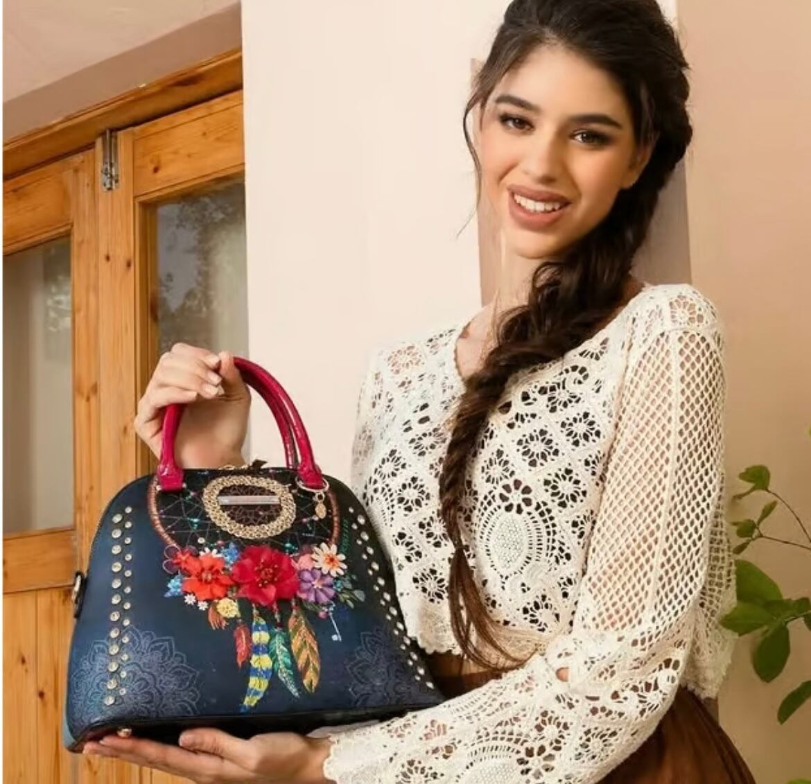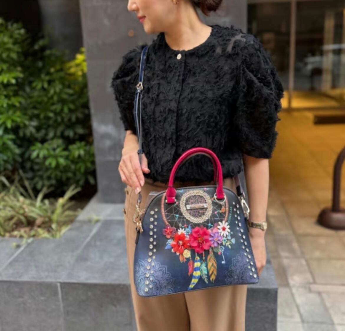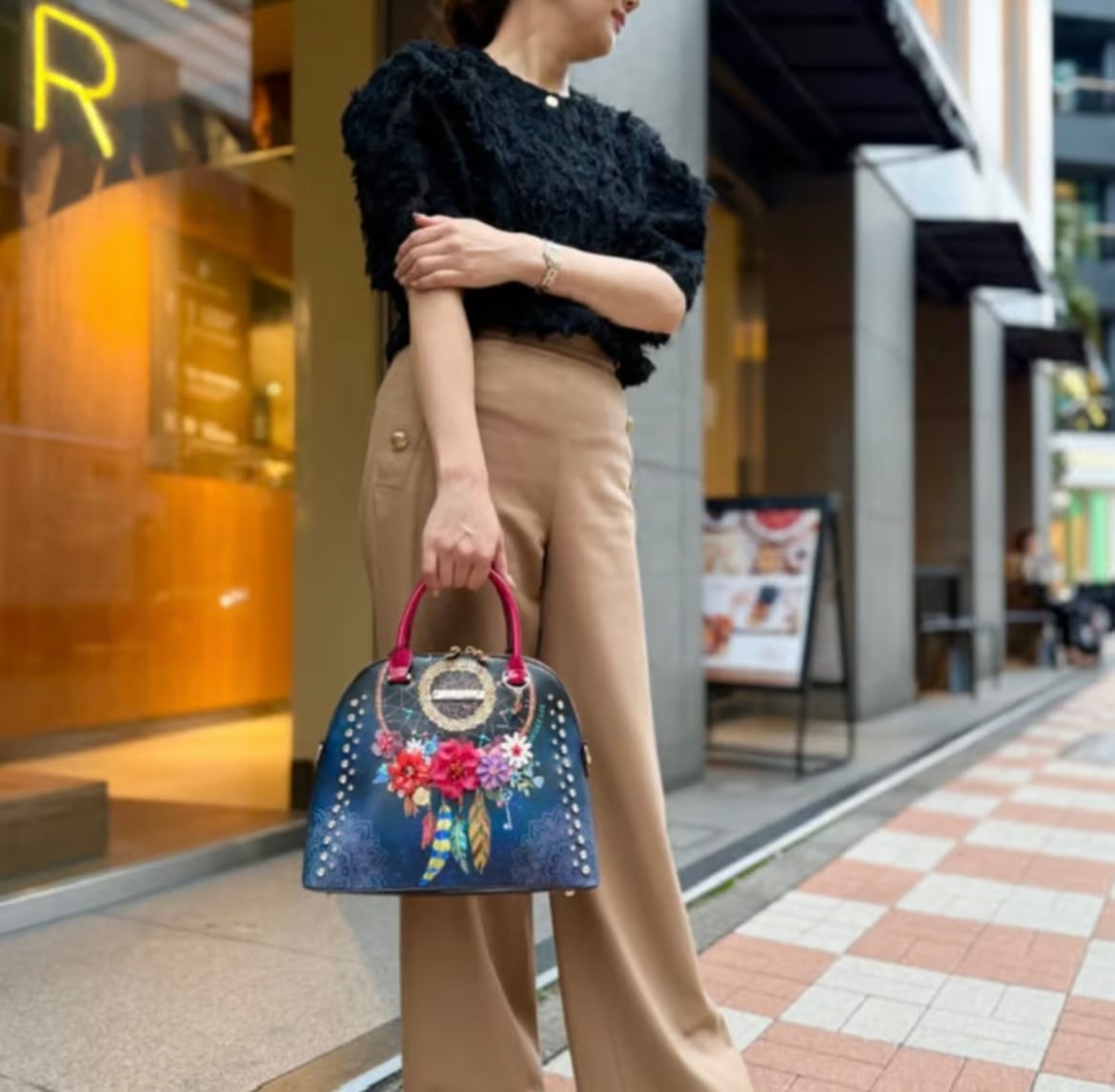 どんなコーディネートもエレガントに仕上げる、魅力的なドーム型ハンドバッグ。